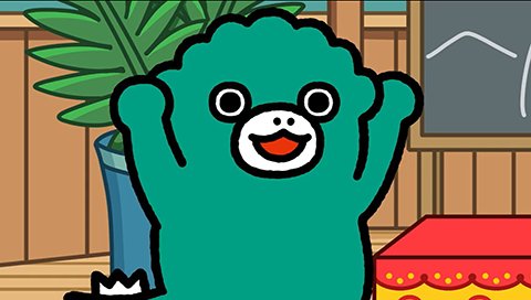ステージに立つ小美人を見つけたちびゴジラたち。