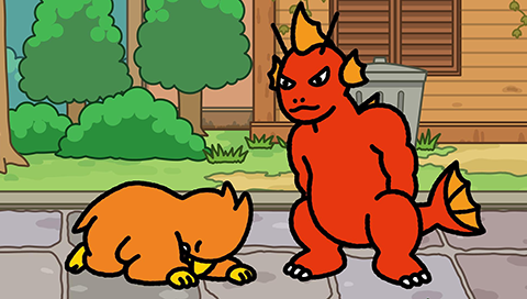 ヤンキー怪獣とケンカして勝ったと自慢するちびラドン。
