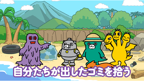 ちびヘドラは海岸の掃除をしている。
