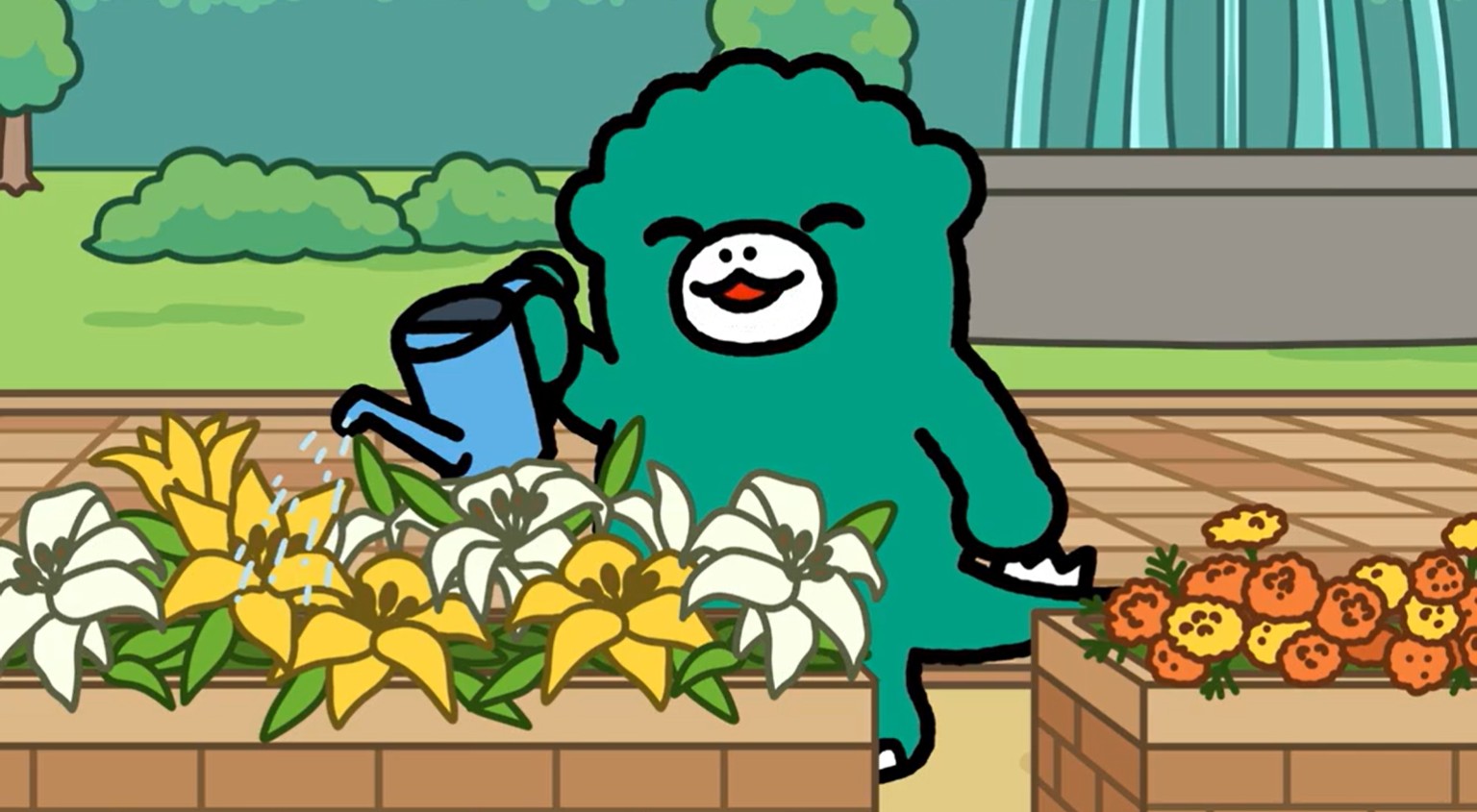 ビオねえさんが花壇のお花に水やりをしているところにやってきたちびゴジラたち。 お花に話しかけながらお水をかけるといいというビオねえさんだったが なにやらおかしな言葉を語りかけていて…