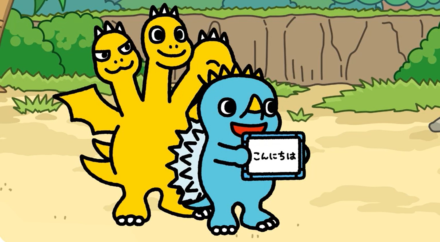 今日も大怪獣ゴジラの咆哮が響いている怪獣島。 お父さんに憧れているちびゴジラはお父さんが何と言っているのか知りたいらしい。 すると、声変わりしているちびアンギラスはゴジラと会話できることがわかって…
