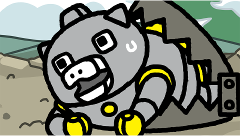 ちびゴジラから弱肉強食の怪獣島で生きぬく術を教わるちびメカゴジラ。