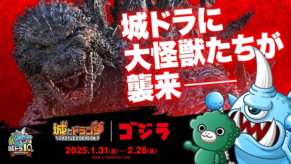 ゴジラシリーズとのコラボが決定した人気スマホゲーム『城とドラゴン』は1月31日(金)19時スタートします。